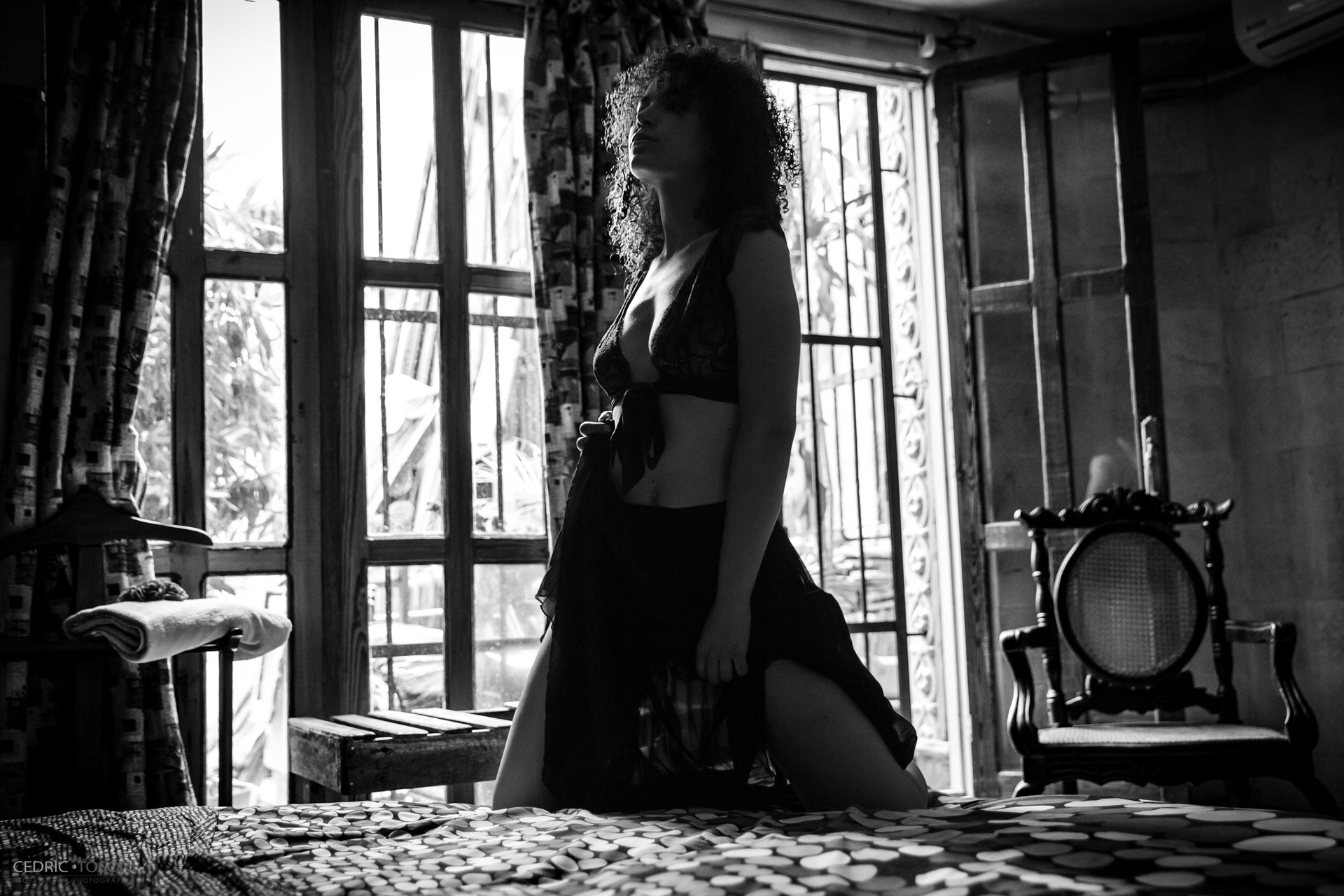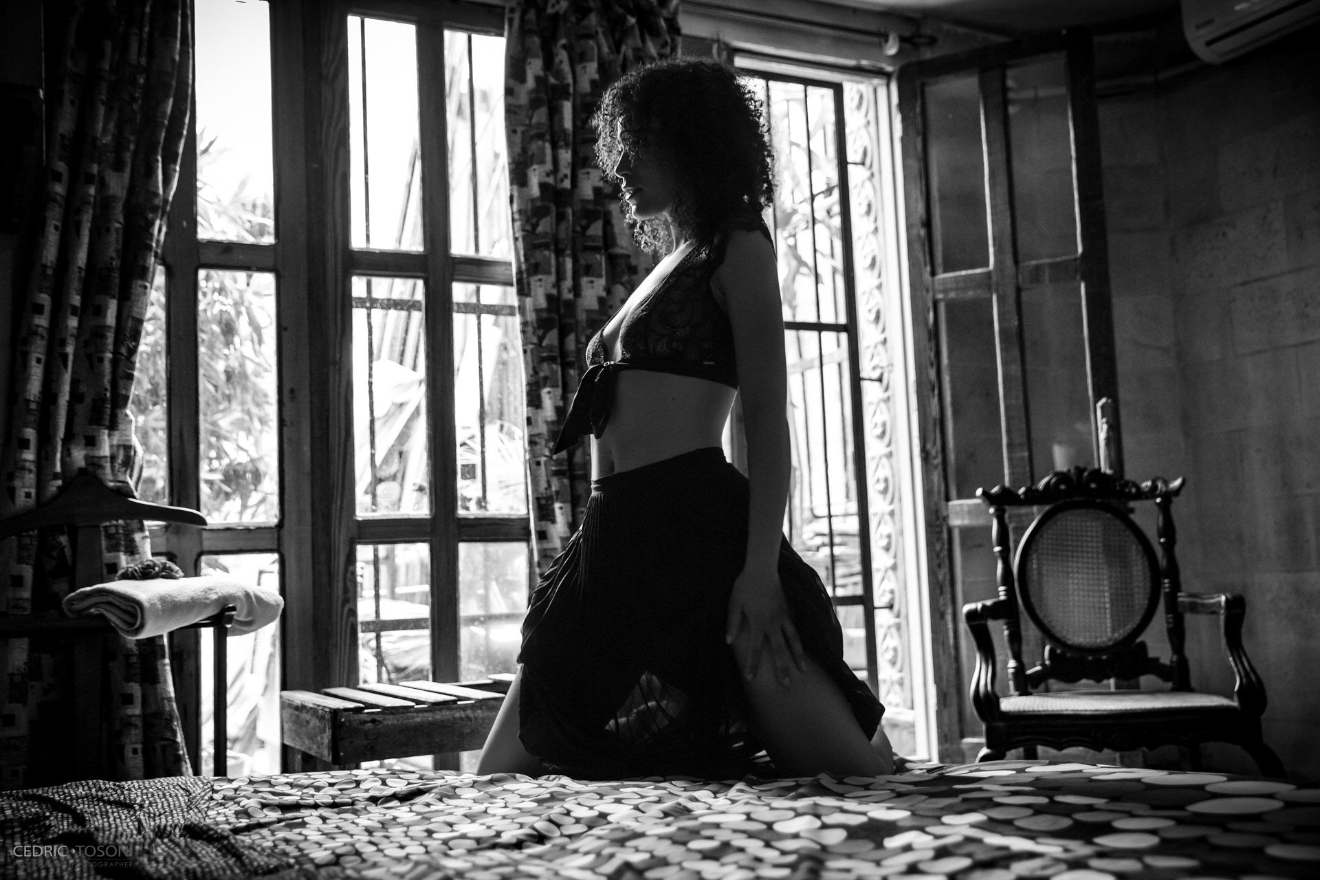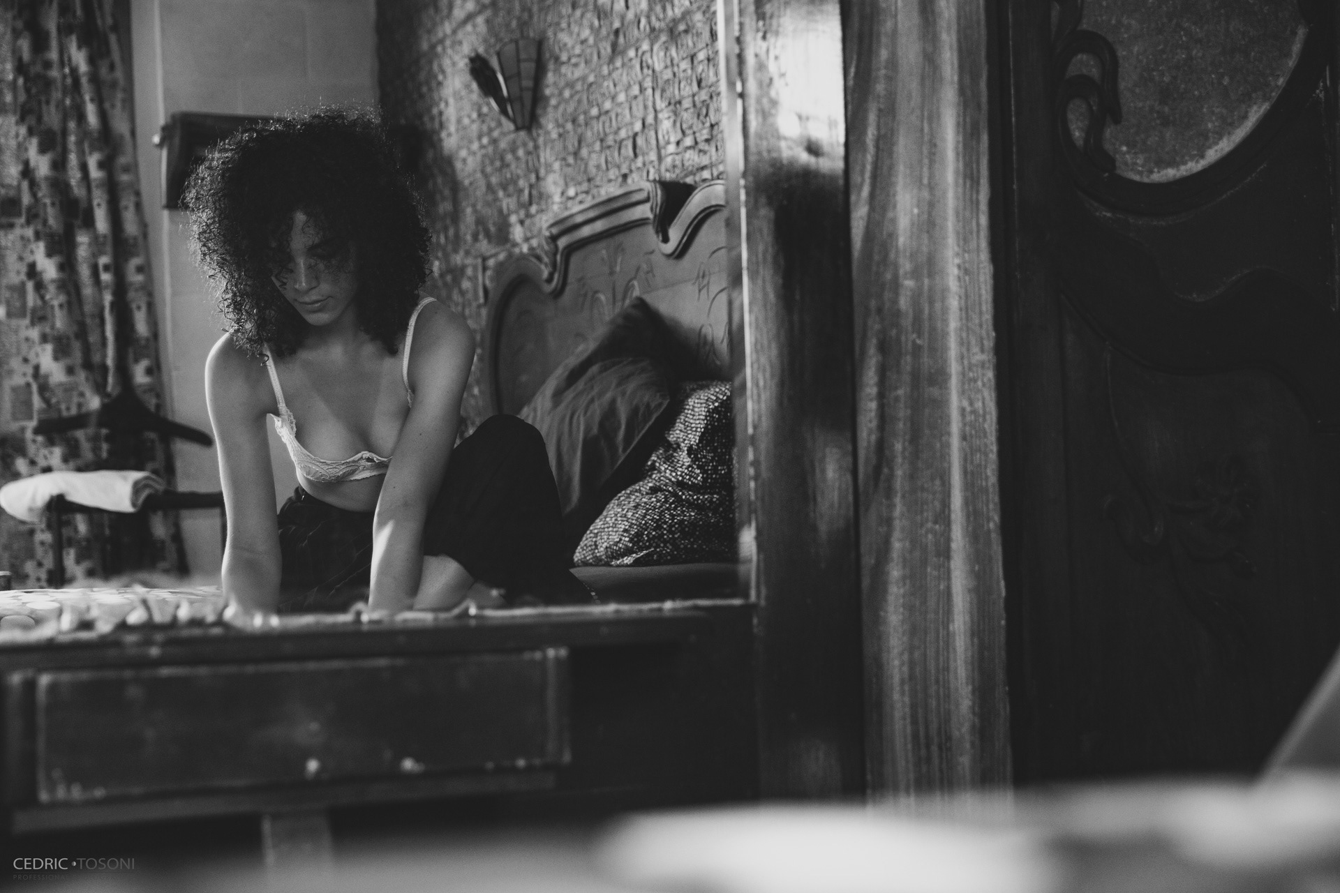 In this room where time slows down, she is there, simply there. No pretense, no staging. Just a stolen moment, suspended between the scorching sun and fleeting shadows that draw strange shapes on the dark walls.